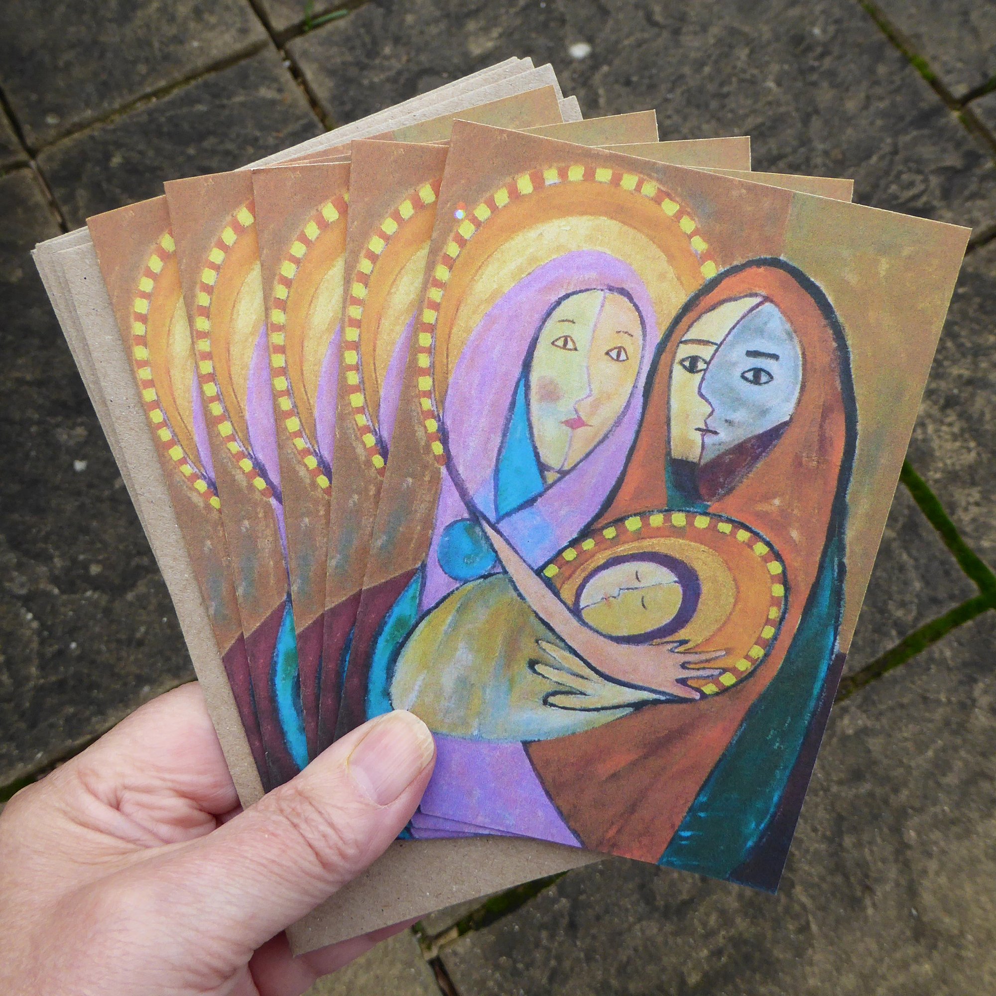 This listing is for a pack of five Christmas cards with reproduction image of original painting
