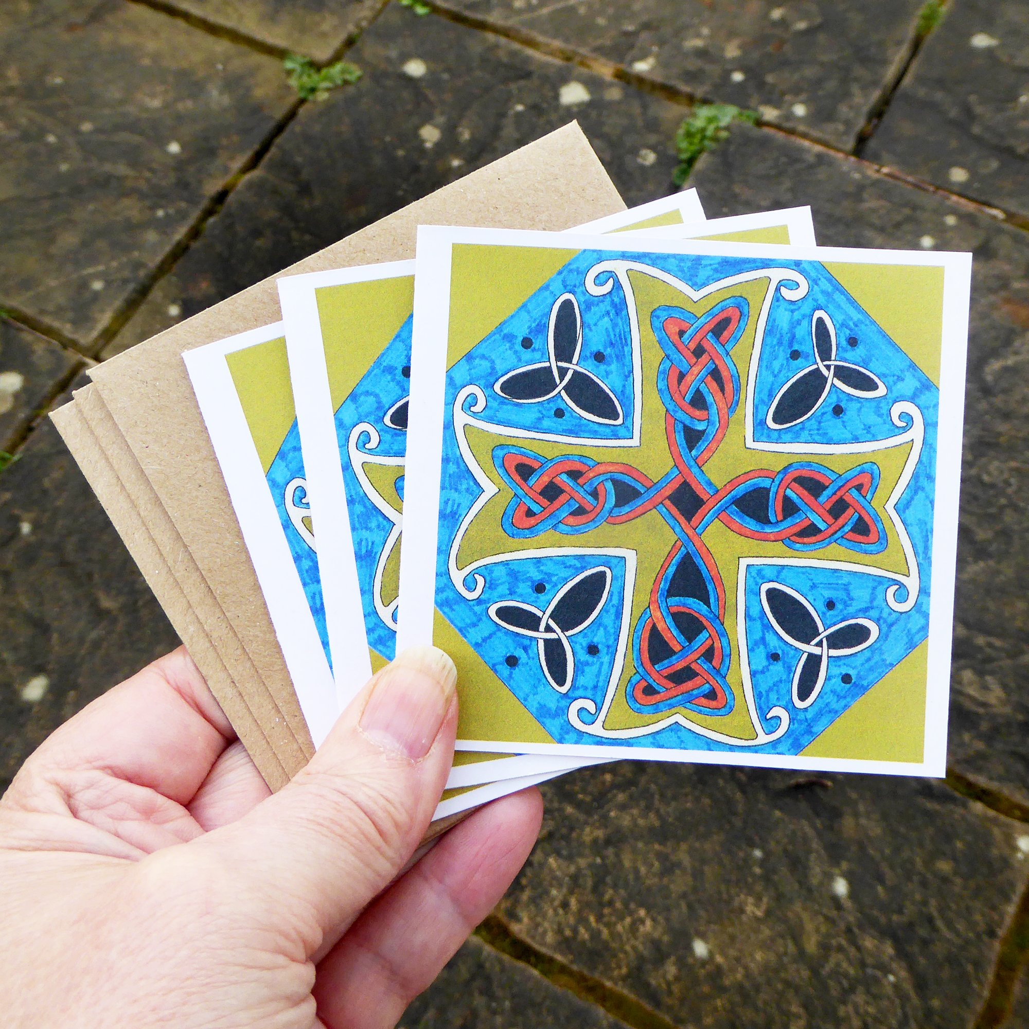 This listing is for a set of 3 Celtic Cross cards with envelopes