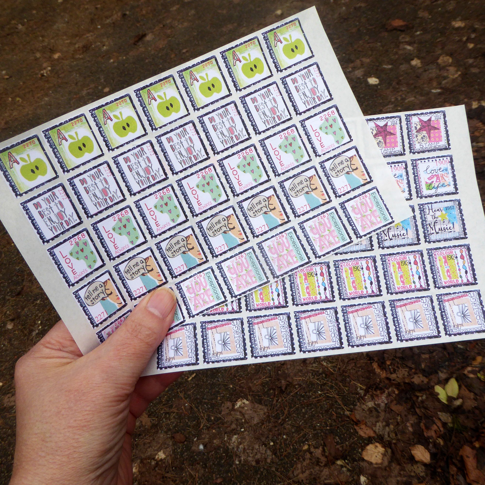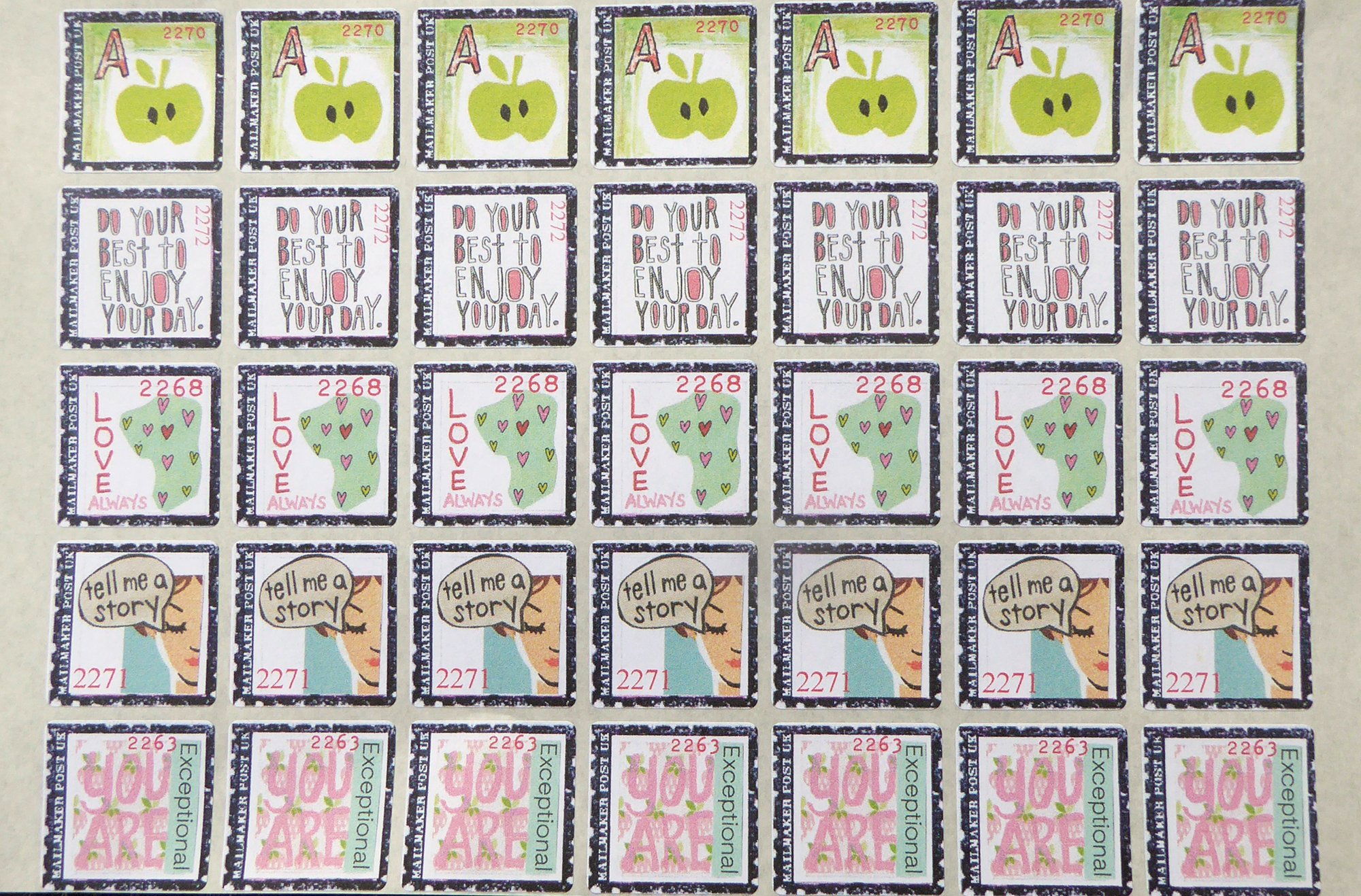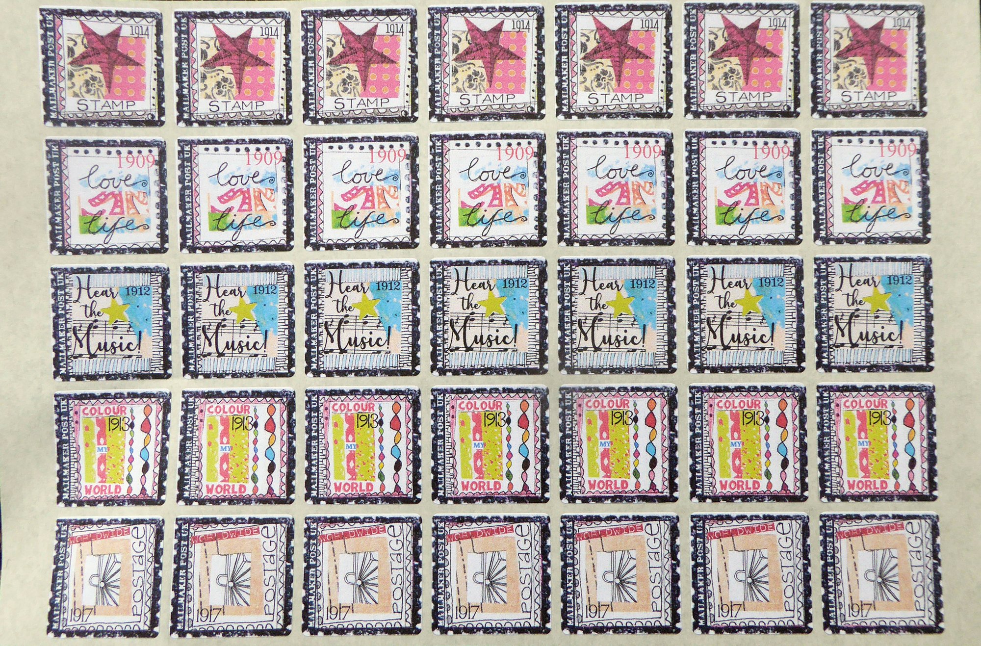 This listing is for 2 sheets of self adhesive faux postage stamps, just peel and stick!